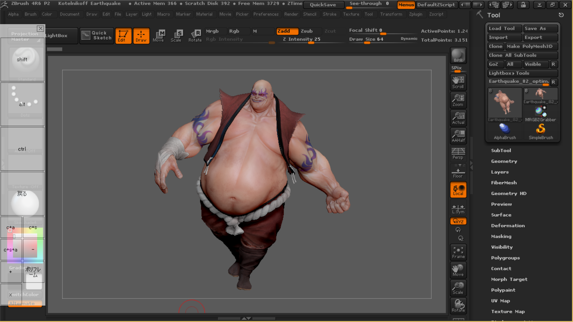 zbrushでは頻繁にショートカットキーを使用します。