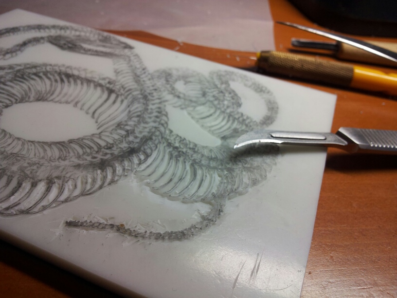 あとはひたすら彫って余白の部分も彫刻刀で彫ってしまいます。