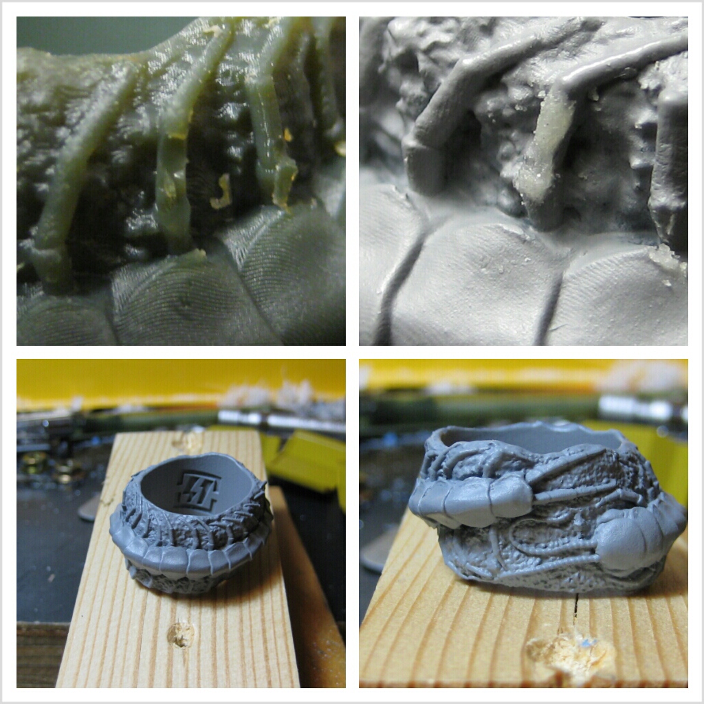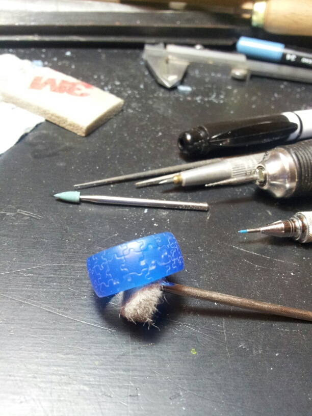 今回はパズル柄のリングにしたいので、マジックなどで下書きをして溝を入れていきます。